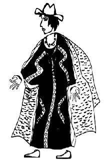 Моложавый человек неопределенного возраста с пушистыми черными волосами, яркими темными глазами и чувственным ртом. Говорит в доверительной, слегка иронической манере. Носит мягкую шляпу.